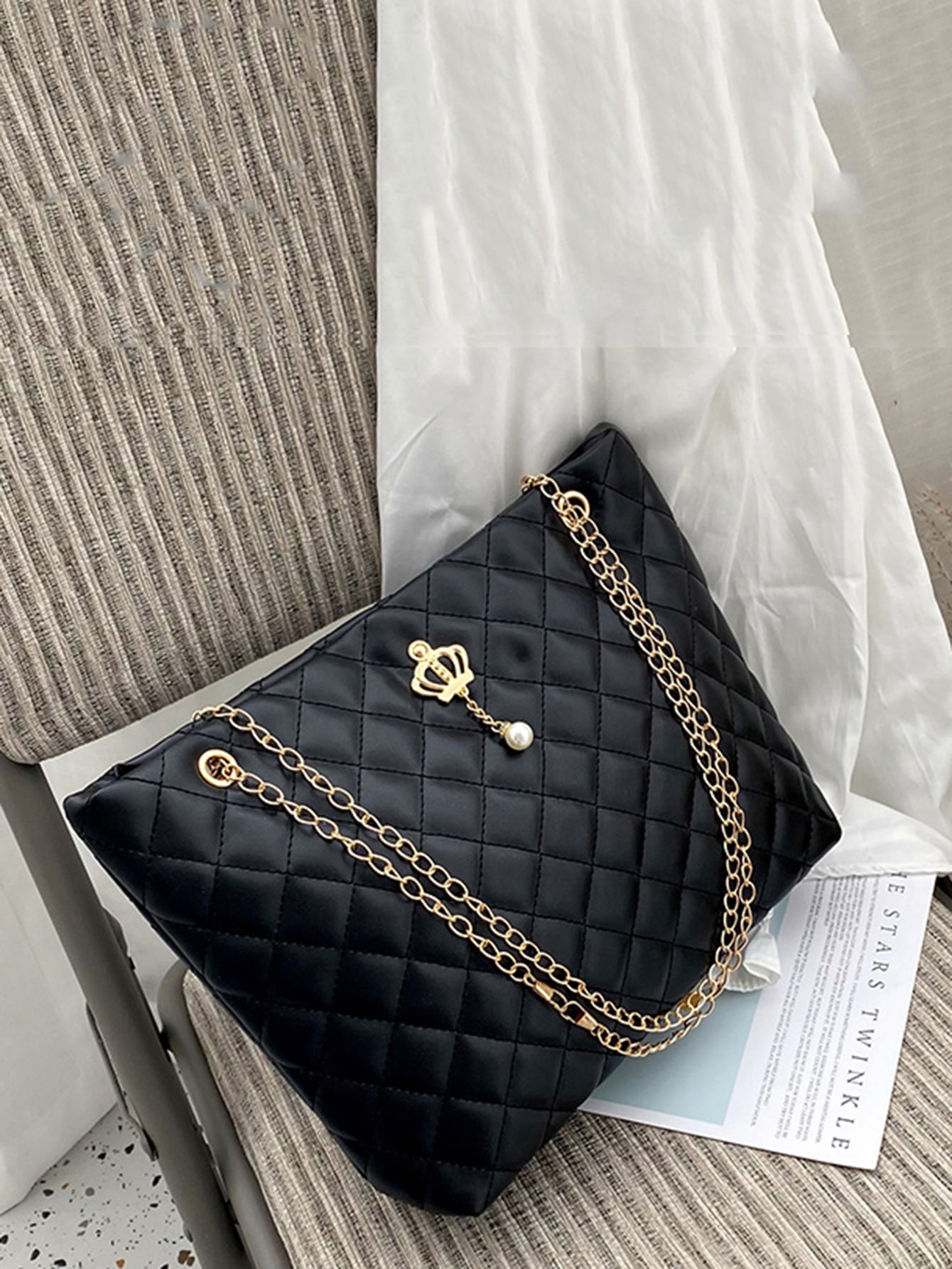 Quilted Metal Decor Chain Tote Bag