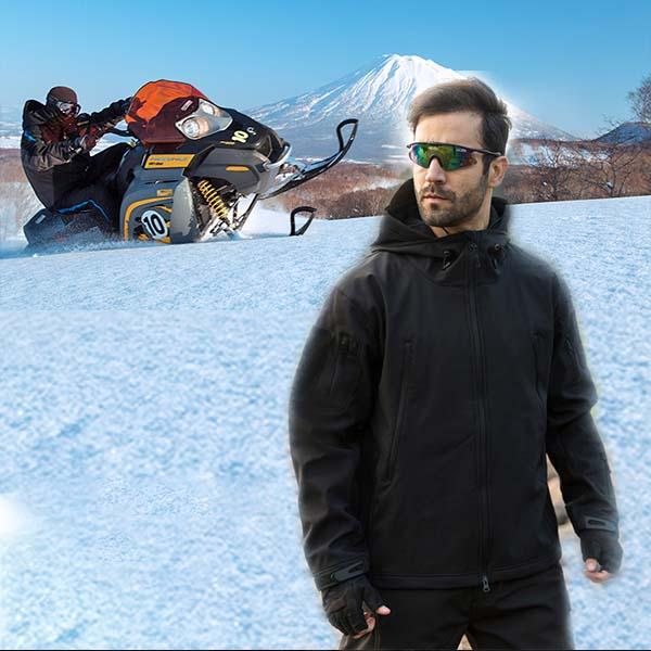 The softshell jacket is made of 100% polyester soft shell fabric.It keeps you dry in the rain and snow, block all wind and keep the cold air out.