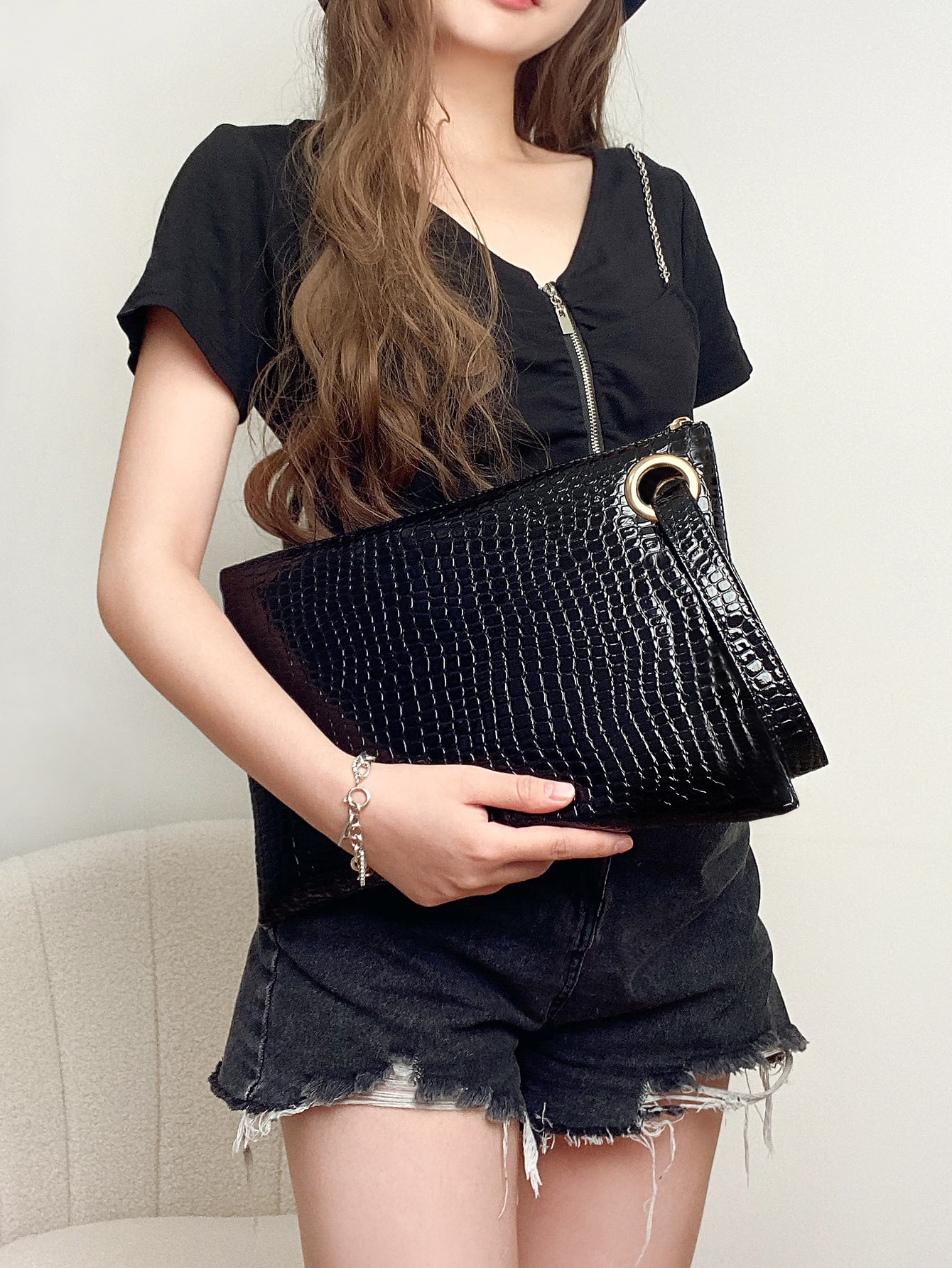 Minimalist Croc Embossed Clutch Bag