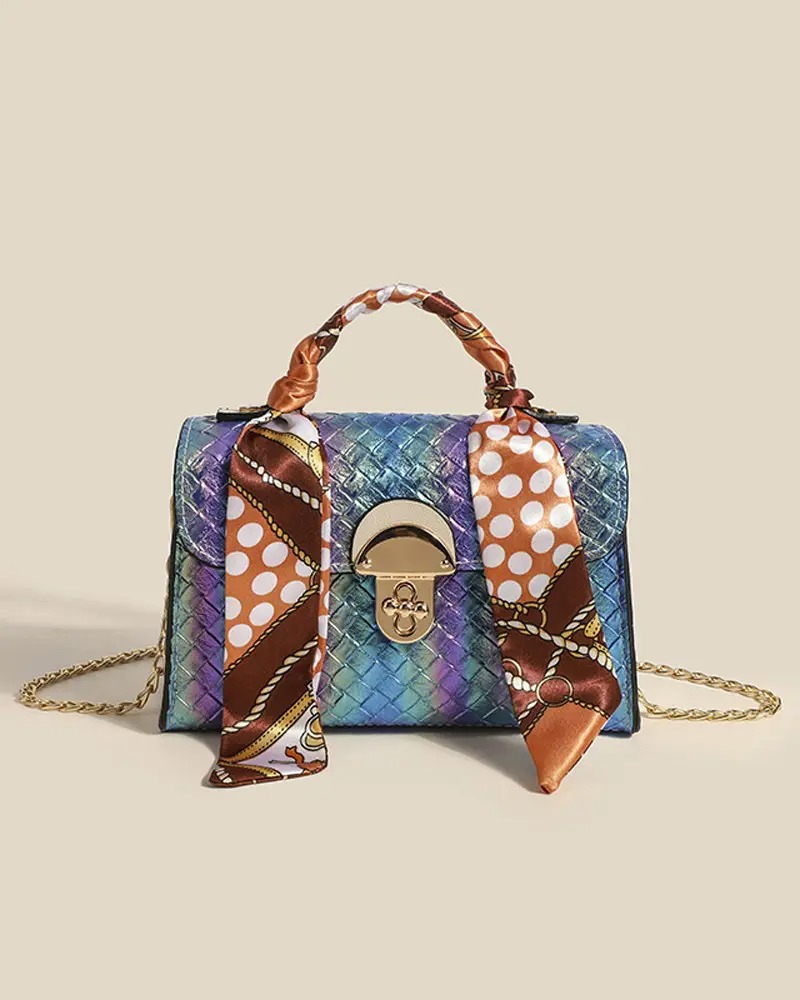 Ombre Chain Strap Shoulder Bag With Ribbon Decor Handle