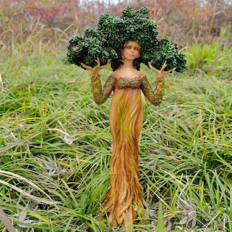 Resin Dryad Statue Hand Painted with Wood Finish